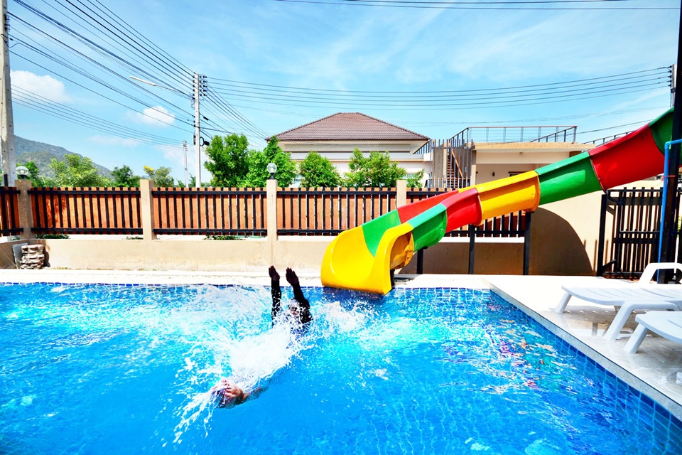 บ้านนับดาว สไลเดอร์ พูลวิลล่า บ้านพักหัวหิน พูลวิลล่า ราคาถูก หลังใหญ่ อยู่ใกล้ภูเขา วิวสวย อากาศดี มีสระว่ายน้ำส่วนตัว พร้อมสไลเดอร์ ใหญ่และยาวมาก บ้านพักขนาด 3 ห้องนอน 3 ห้องน้ำ ติดแอร์ทั้งหลัง บ้านพักหัวหิน บ้านนับดาว รองรับนักท่องเที่ยวได้ถึง 10 ท่าน เสริมได้อีก 5 ท่าน มีดาดฟ้า สามารถจัดปาร์ตี้ นั่งชมวิว และ กางเต้นท์นอนได้ บ้านพักอยู่ห่างทะเลประมาณ 4 ก.ม. หรือ เพียง 10 นาที ที่พักหัวหิน ราคาถูก